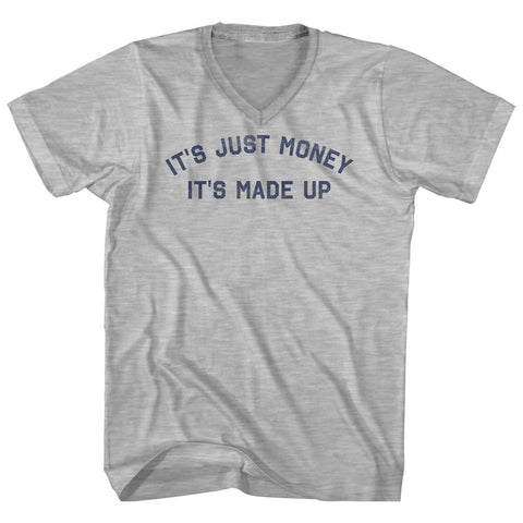 Product Story: It'S Just Money It'S Made Up Adult Cotton V-neck T-shirtProduct Description: It'S Just Money It'S Made Up Adult Cotton V-neck T-shirt Tri-Blend (Polyester, Rayon, Cotton) Buttery Smooth Soft Material Medium Weight Tee Soft Hand Print