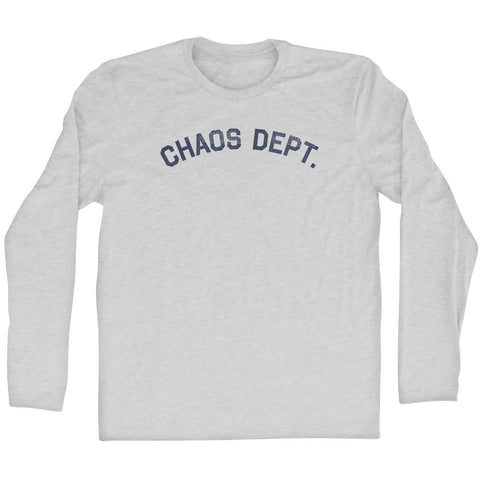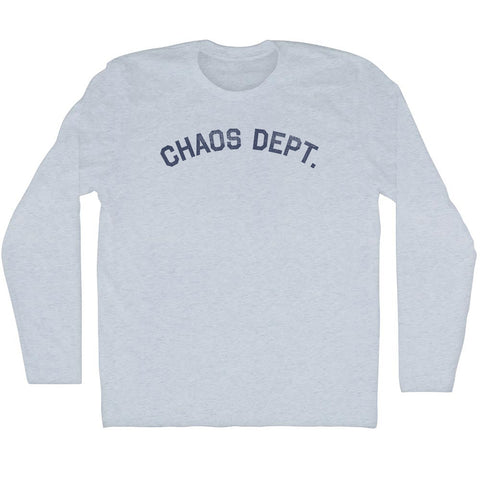 Product Story: Chaos Dept Adult Tri-Blend Long Sleeve T-shirtProduct Description: Chaos Dept Adult Tri-Blend Long Sleeve T-shirt Tri-Blend (Polyester, Rayon, Cotton) Buttery Smooth Soft Material Medium Weight Tee Soft Hand Print