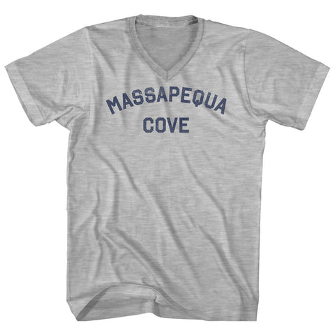 Product Story: Massapequa Cove Adult Cotton V-neck T-shirtProduct Description: Massapequa Cove Adult Cotton V-neck T-shirt Tri-Blend (Polyester, Rayon, Cotton) Buttery Smooth Soft Material Medium Weight Tee Soft Hand Print