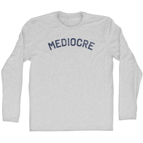 Product Story: Mediocre Adult Tri-Blend Long Sleeve T-shirtProduct Description: Mediocre Adult Tri-Blend Long Sleeve T-shirt Tri-Blend (Polyester, Rayon, Cotton) Buttery Smooth Soft Material Medium Weight Tee Soft Hand Print