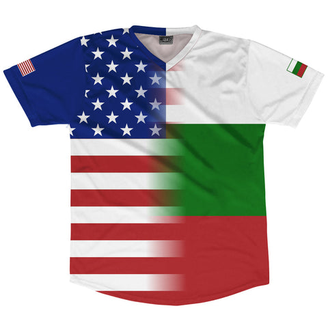 Product Story: Bulgaria And American Flag Combo Soccer Jersey Made In USA Product Description: Bulgaria And American Flag Combo Soccer Jersey Made In USA 100% Micro Fiber Polyester Buttery Smooth Premium Socce Jersey Sublimated Printing Made In USA