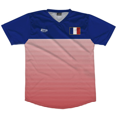Product Story: France Rise Soccer Jersey Made In USAProduct Description: France Rise Soccer Jersey Made In USA 100% Micro-Fiber Polyester Buttery Smooth Premium Socce Jersey Sublimated Printing Made In USA