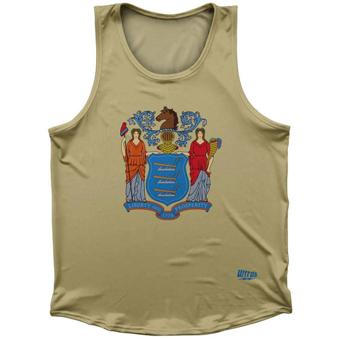 Product Story: New Jersey State Flag Sport Tank Top Made In USA. Work out and represent in this ultra cool sport tank top.Product Description: New Jersey State Flag Sport Tank Top Made In USA. Work out and represent in this ultra cool sport tank top. 4 Way Stretch Premium Micro-Fiber Sport Material 100% Polyester Sublimated Print Smooth and Comfortable Moisture...