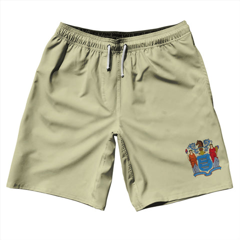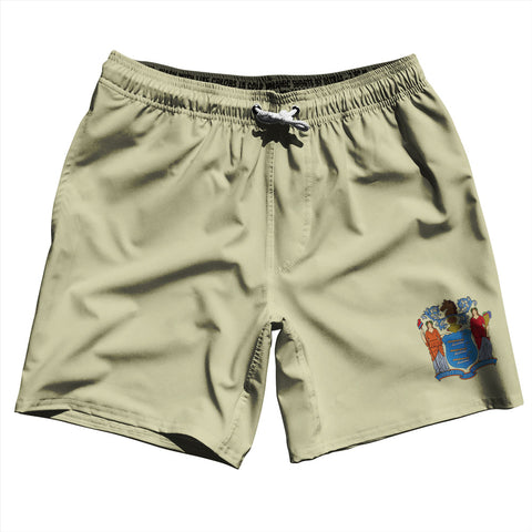 Product Story: New Jersey US State Flag Swim Shorts 7" Made in USAProduct Description: New Jersey US State Flag Swim Shorts 7" Made in USA Stripe 2.50" Inseam Swim Shorts Swim Trunks Board Shorts Bathing Suits Swim Suits Quick Drying Material Stretch Polyester Elastic Waistband Drawstring Side Pockets Made In USA