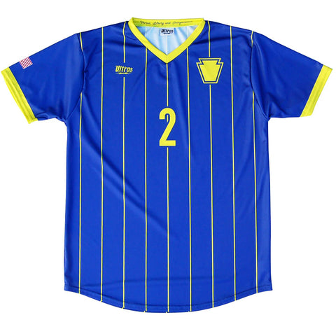 Product Story: Pennsylvania State Cup Soccer Jersey Made In USAProduct Description: Pennsylvania State Cup Soccer Jersey Made In USA 100% Micro-Fiber Polyester Buttery Smooth Premium Socce Jersey Sublimated Printing Made In USA