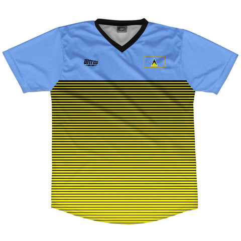Product Story: Saint Lucia Rise Soccer Jersey Made In USAProduct Description: Saint Lucia Rise Soccer Jersey Made In USA 100% Micro-Fiber Polyester Buttery Smooth Premium Socce Jersey Sublimated Printing Made In USA