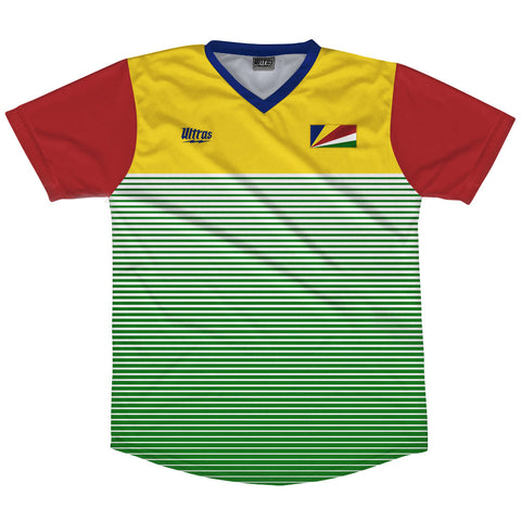 Product Story: Seychelles Rise Soccer Jersey Made In USAProduct Description: Seychelles Rise Soccer Jersey Made In USA 100% Micro-Fiber Polyester Buttery Smooth Premium Socce Jersey Sublimated Printing Made In USA
