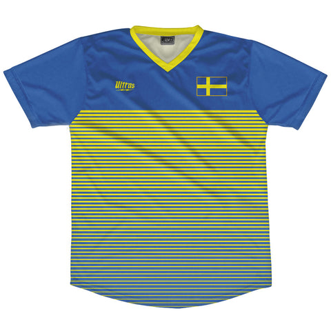 Product Story: Sweden Rise Soccer Jersey Made In USAProduct Description: Sweden Rise Soccer Jersey Made In USA 100% Micro-Fiber Polyester Buttery Smooth Premium Socce Jersey Sublimated Printing Made In USA