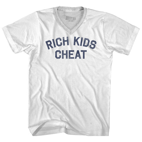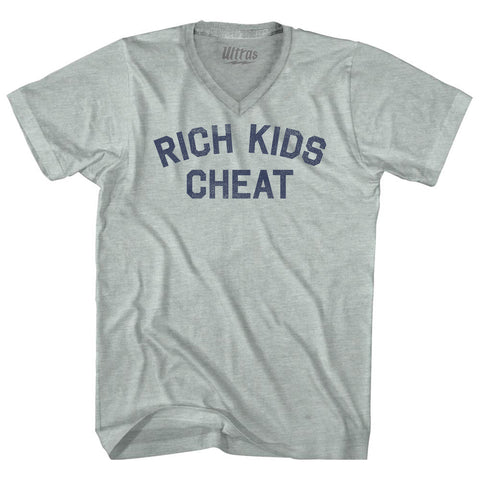 Product Story: Rich Kids Cheat Adult Tri-Blend V-neck T-shirtProduct Description: Rich Kids Cheat Adult Tri-Blend V-neck T-shirt Tri-Blend (Polyester, Rayon, Cotton) Buttery Smooth Soft Material Medium Weight Tee Soft Hand Print