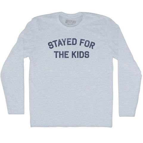 Product Story: Stayed For The Kids Adult Tri-Blend Long Sleeve T-shirtProduct Description: Stayed For The Kids Adult Tri-Blend Long Sleeve T-shirt Tri-Blend (Polyester, Rayon, Cotton) Buttery Smooth Soft Material Medium Weight Tee Soft Hand Print