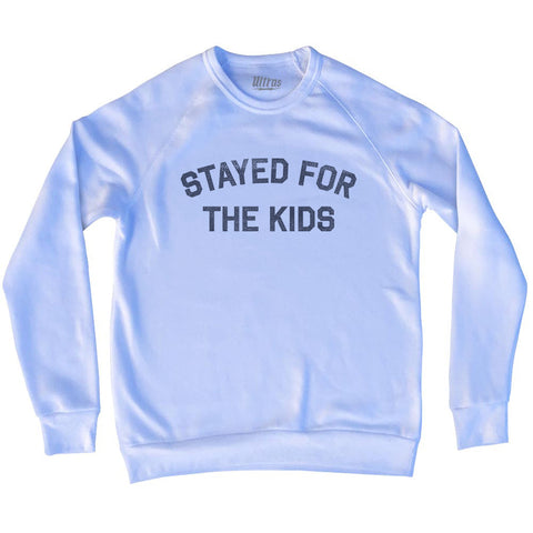 Product Story: Stayed For The Kids Adult Tri-Blend SweatshirtProduct Description: Stayed For The Kids Adult Tri-Blend Sweatshirt Tri-Blend (Polyester, Rayon, Cotton) Buttery Smooth Soft Material Medium Weight Tee Soft Hand Print