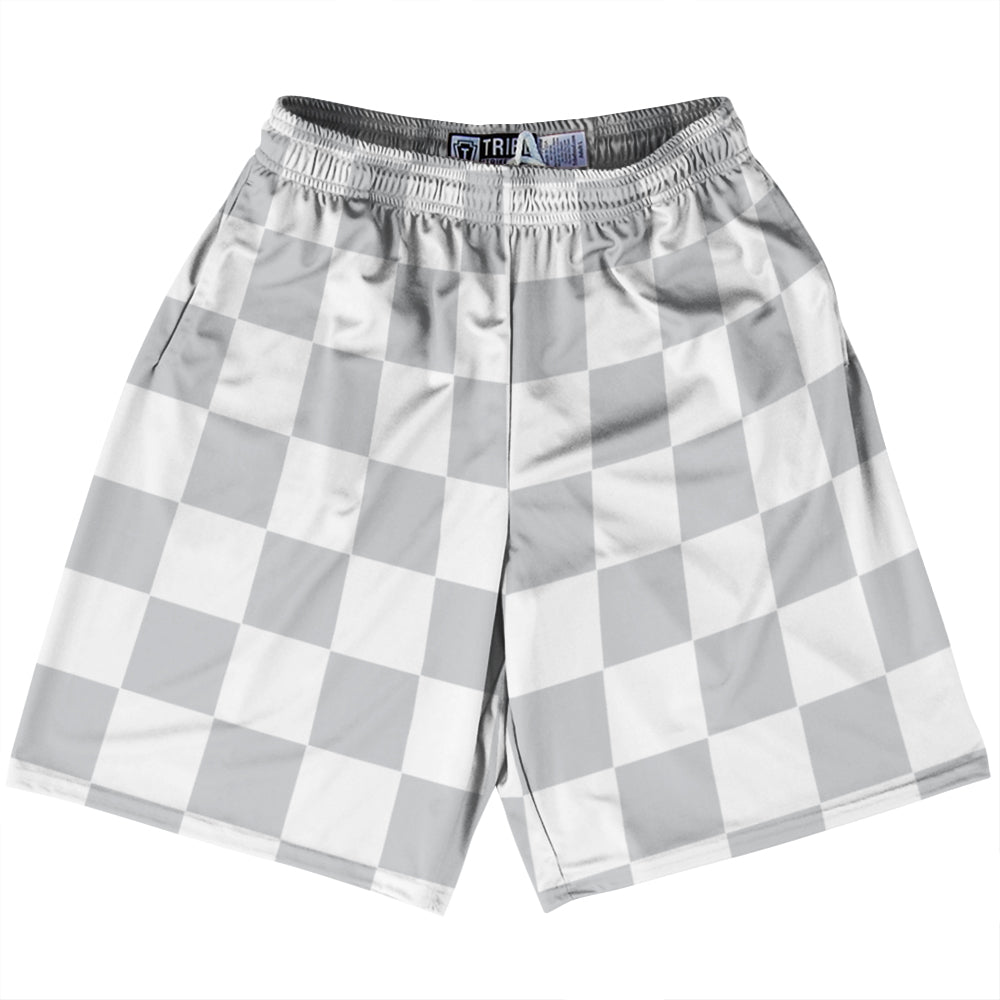Checkerboard 2.5 Inches Grey Medium and White Lacrosse Shorts Made In USA