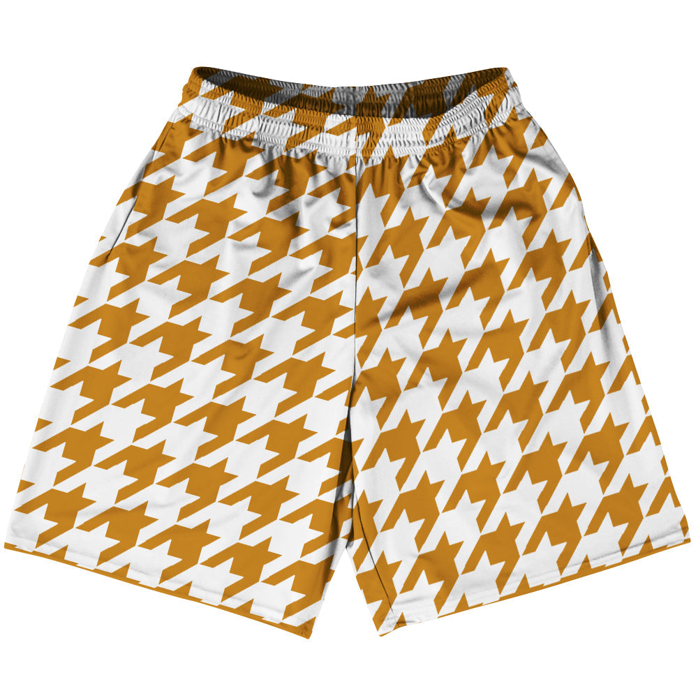 - Orange Burnt And White Houndstooth Lacrosse Shorts Made In USA