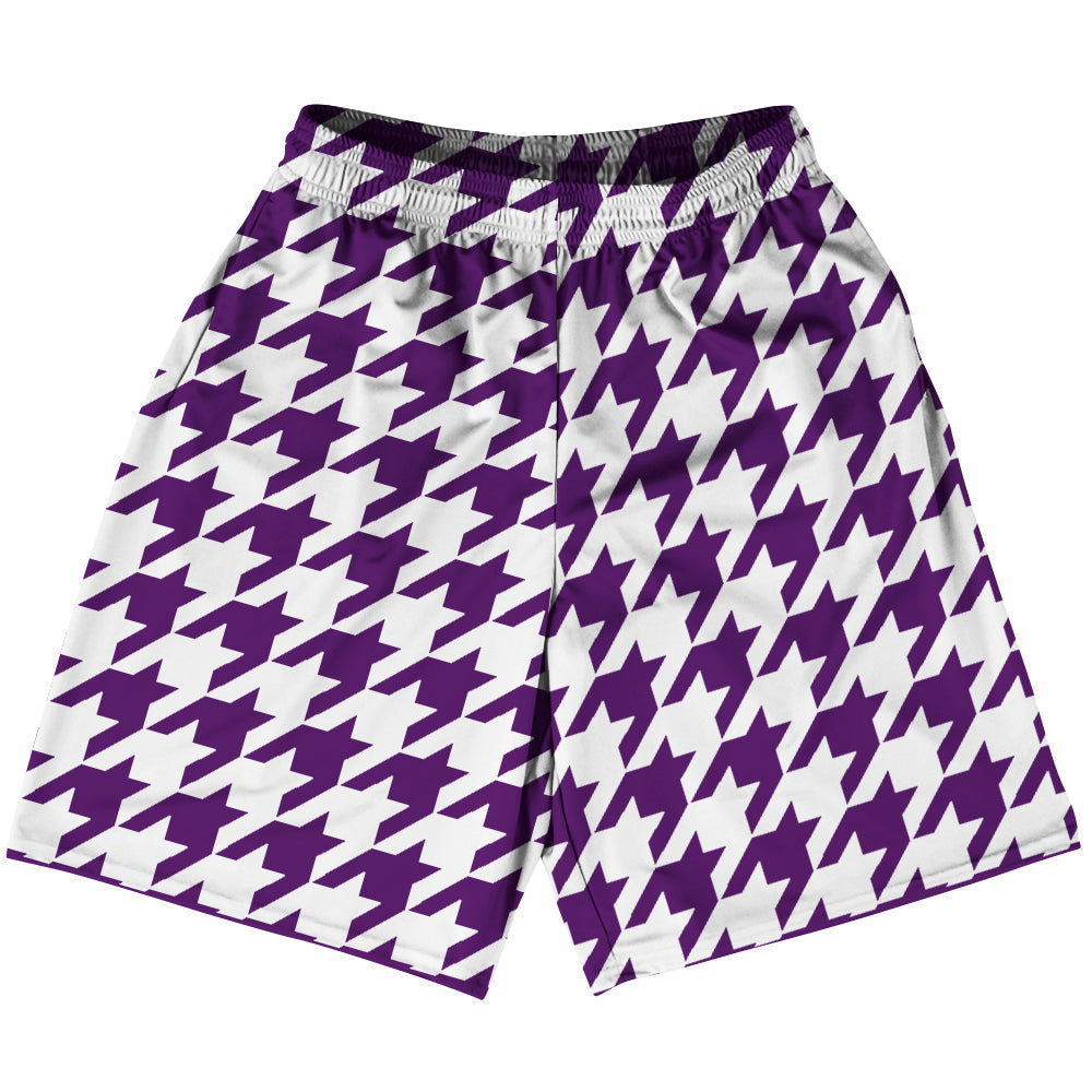 - Purple Medium And White Houndstooth Lacrosse Shorts Made In USA