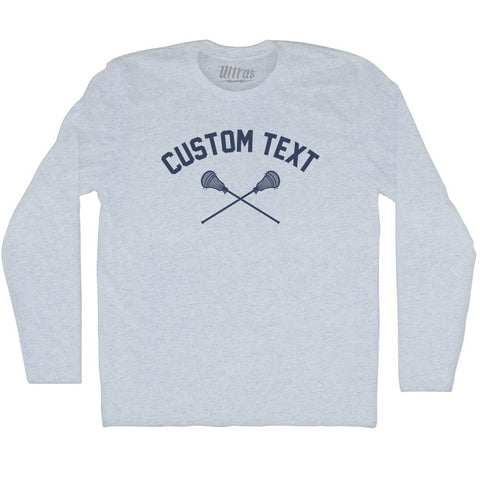 Product Story: Custom Text Crossed Lacrosse Sticks Adult Tri-Blend Long Sleeve T-shirtProduct Description: Custom Text Crossed Lacrosse Sticks Adult Tri-Blend Long Sleeve T-shirt Tri-Blend (Polyester, Rayon, Cotton) Buttery Smooth Soft Material Medium Weight Tee Soft Hand Print