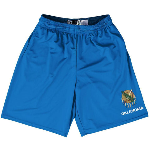 Product Story: Oklahoma State Flag 9" Inseam Lacrosse Shorts. Seam Breaks Above KneeProduct Description: Oklahoma State Flag 9" Inseam Lacrosse Shorts Forever Color Sharpness 9 Inch Inseam Side Pockets Athletic Microfiber Great Sports Shorts Elastic Waist Draw String Athletic Polyester Material Moisture Wicking Material