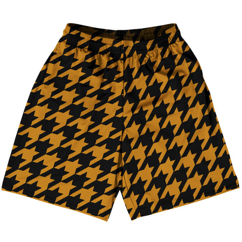 Product Story: Orange Tennessee And Black Houndstooth Lacrosse Shorts Made In USAProduct Description: Orange Tennessee And Black Houndstooth Lacrosse Shorts Made In USA Athletic Material Lacrosse Shorts Premium Lacrosse Product Made In USA