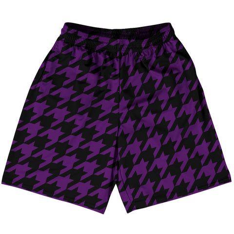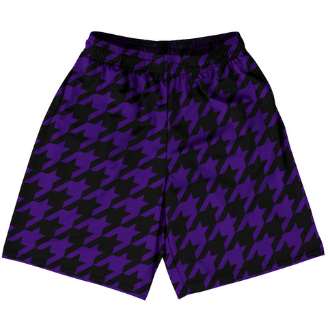 Product Story: Purple Lakers And Black Houndstooth Lacrosse Shorts Made In USAProduct Description: Purple Lakers And Black Houndstooth Lacrosse Shorts Made In USA Athletic Material Lacrosse Shorts Premium Lacrosse Product Made In USA