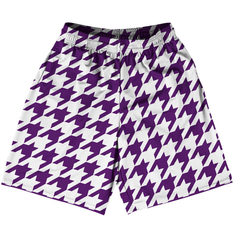 Product Story: Purple Lakers And White Houndstooth Lacrosse Shorts Made In USAProduct Description: Purple Lakers And White Houndstooth Lacrosse Shorts Made In USA Athletic Material Lacrosse Shorts Premium Lacrosse Product Made In USA