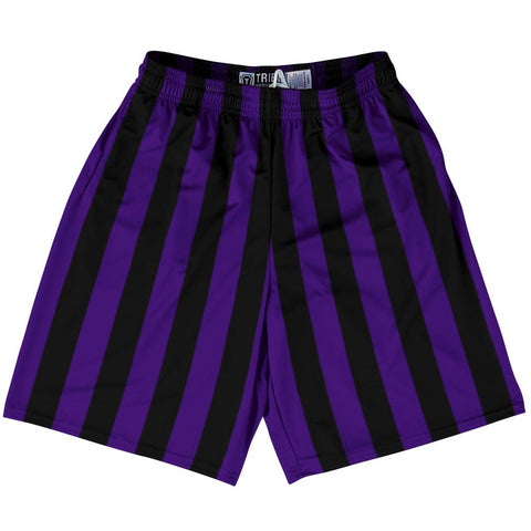 Product Story: Purple Violet Laker & Black Vertical Stripe Lacrosse Shorts Made In USAProduct Description: Purple Violet Laker & Black Vertical Stripe Lacrosse Shorts Made In USA Athletic Material Lacrosse Shorts Premium Lacrosse Product Made in USA