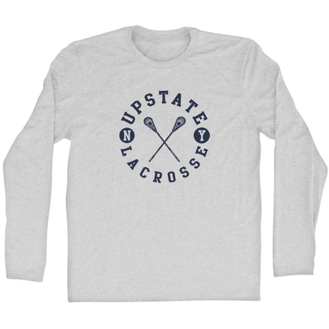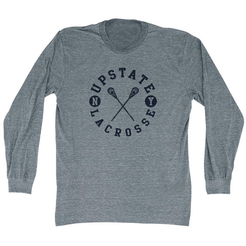 Product Story: Upstate Ny Lacrosse Adult Tri-Blend Long Sleeve T-ShirtProduct Description: Upstate Ny Lacrosse Adult Tri-Blend Long Sleeve T-Shirt Tri-Blend (Polyester, Rayon, Cotton) Buttery Smooth Soft Material Medium Weight Tee Soft Hand Print