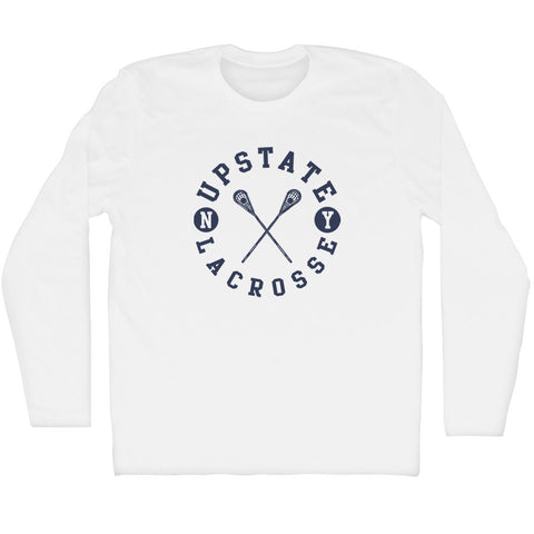 Product Story: Upstate Ny Lacrosse Adult Cotton Long Sleeve T-ShirtProduct Description: Upstate Ny Lacrosse Adult Cotton Long Sleeve T-Shirt Cotton Buttery Smooth Soft Material Medium Weight Tee Soft Hand Print