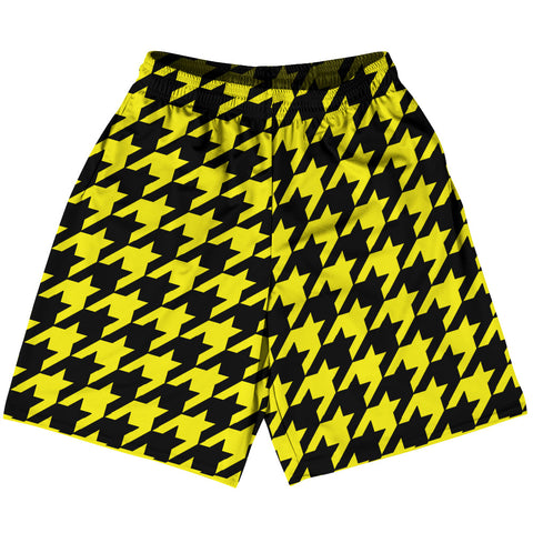 Product Story: Yellow Bright And Black Houndstooth Lacrosse Shorts Made In USAProduct Description: Yellow Bright And Black Houndstooth Lacrosse Shorts Made In USA Athletic Material Lacrosse Shorts Premium Lacrosse Product Made In USA