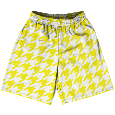 Product Story: Yellow Bright And White Houndstooth Lacrosse Shorts Made In USAProduct Description: Yellow Bright And White Houndstooth Lacrosse Shorts Made In USA Athletic Material Lacrosse Shorts Premium Lacrosse Product Made In USA