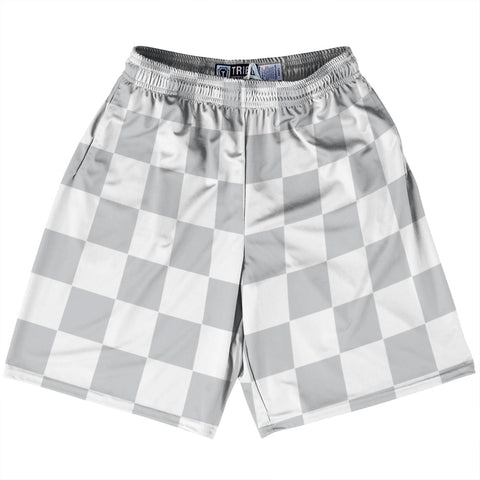 Product Story: Checkerboard 2.5 Inches Grey Medium and White Lacrosse Shorts Made In USAProduct Description: Checkerboard 2.5 Inches Grey Medium and White Lacrosse Shorts Made In USA Athletic Material Lacrosse Shorts Premium Lacrosse Product Made in USA