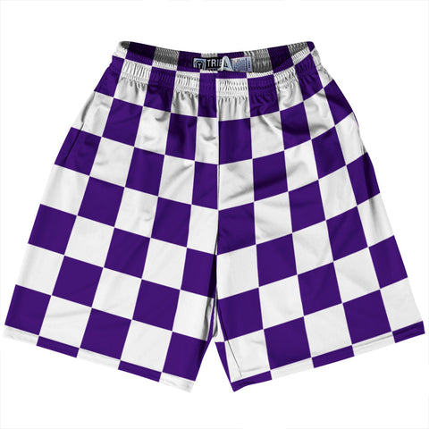 Product Story: Checkerboard 2.5 Inches Purple Medium and White Lacrosse Shorts Made In USAProduct Description: Checkerboard 2.5 Inches Purple Medium and White Lacrosse Shorts Made In USA Athletic Material Lacrosse Shorts Premium Lacrosse Product Made in USA