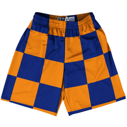 Product Story: Checkerboard 5 Inches Blue Navy and Vegas Gold Lacrosse Shorts Made In USAProduct Description: Checkerboard 5 Inches Blue Navy and Vegas Gold Lacrosse Shorts Made In USA Athletic Material Lacrosse Shorts Premium Lacrosse Product Made in USA