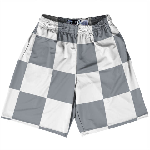 Product Story: Checkerboard 5 Inches Grey Dark and White Lacrosse Shorts Made In USAProduct Description: Checkerboard 5 Inches Grey Dark and White Lacrosse Shorts Made In USA Athletic Material Lacrosse Shorts Premium Lacrosse Product Made in USA