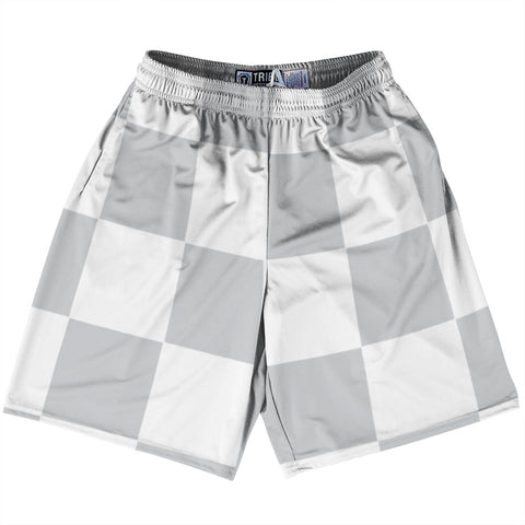 Product Story: Checkerboard 5 Inches Grey Medium and White Lacrosse Shorts Made In USAProduct Description: Checkerboard 5 Inches Grey Medium and White Lacrosse Shorts Made In USA Athletic Material Lacrosse Shorts Premium Lacrosse Product Made in USA