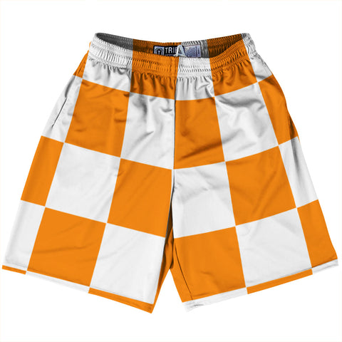Product Story: Checkerboard 5 Inches Orange Tennessee and White Lacrosse Shorts Made In USAProduct Description: Checkerboard 5 Inches Orange Tennessee and White Lacrosse Shorts Made In USA Athletic Material Lacrosse Shorts Premium Lacrosse Product Made in USA