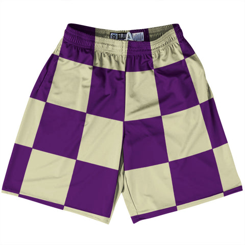 Product Story: Checkerboard 5 Inches Purple Medium and Vegas Gold Lacrosse Shorts Made In USAProduct Description: Checkerboard 5 Inches Purple Medium and Vegas Gold Lacrosse Shorts Made In USA Athletic Material Lacrosse Shorts Premium Lacrosse Product Made in USA