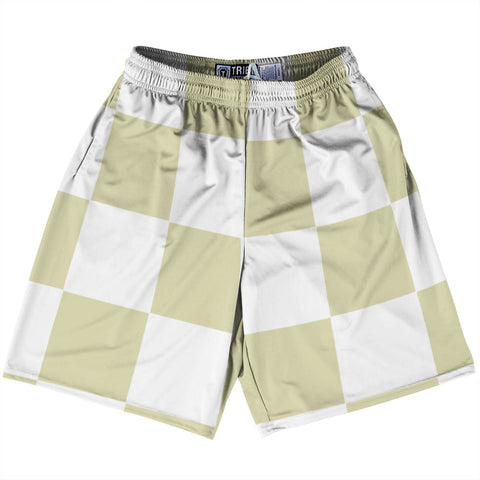 Product Story: Checkerboard 5 Inches Vegas Gold and White Lacrosse Shorts Made In USAProduct Description: Checkerboard 5 Inches Vegas Gold and White Lacrosse Shorts Made In USA Athletic Material Lacrosse Shorts Premium Lacrosse Product Made in USA