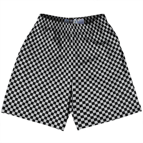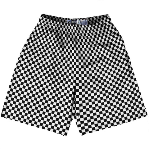 Product Story: Checkerboard Half Inch Black and White Lacrosse Shorts Made In USAProduct Description: Checkerboard Half Inch Black and White Lacrosse Shorts Made In USA Athletic Material Lacrosse Shorts Premium Lacrosse Product Made in USA