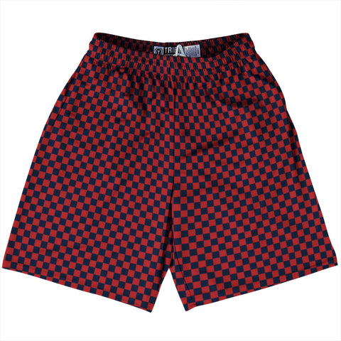 Product Story: Checkerboard Half Inch Blue Navy and Red Dark Lacrosse Shorts Made In USAProduct Description: Checkerboard Half Inch Blue Navy and Red Dark Lacrosse Shorts Made In USA Athletic Material Lacrosse Shorts Premium Lacrosse Product Made in USA