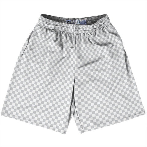 Product Story: Checkerboard Half Inch Grey Medium and White Lacrosse Shorts Made In USAProduct Description: Checkerboard Half Inch Grey Medium and White Lacrosse Shorts Made In USA Athletic Material Lacrosse Shorts Premium Lacrosse Product Made in USA