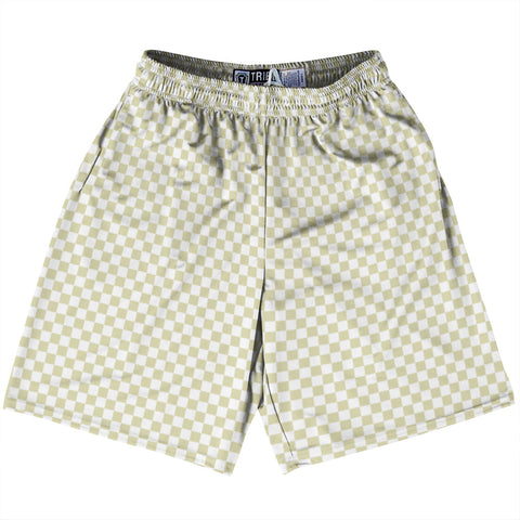 Product Story: Checkerboard Half Inch Vegas Gold and White Lacrosse Shorts Made In USAProduct Description: Checkerboard Half Inch Vegas Gold and White Lacrosse Shorts Made In USA Athletic Material Lacrosse Shorts Premium Lacrosse Product Made in USA