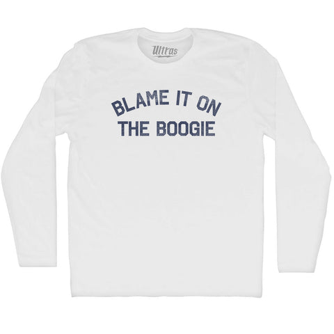Product Story: Blame It On The Boogie Adult Cotton Long Sleeve T-shirtProduct Description: Blame It On The Boogie Adult Cotton Long Sleeve T-shirt Cotton (90% Cotton &10% Polyester) Buttery Smooth Soft Material Medium Weight Tee Soft Hand Print