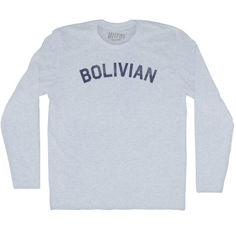 Product Story: Bolivian Adult Tri-Blend Long Sleeve T-shirtProduct Description: Bolivian Adult Tri-Blend Long Sleeve T-shirt Tri-Blend (Polyester, Rayon, Cotton) Buttery Smooth Soft Material Medium Weight Tee Soft Hand Print