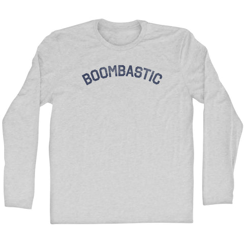 Product Story: Boombastic Adult Tri-Blend Long Sleeve T-shirtProduct Description: Boombastic Adult Tri-Blend Long Sleeve T-shirt Tri-Blend (Polyester, Rayon, Cotton) Buttery Smooth Soft Material Medium Weight Tee Soft Hand Print