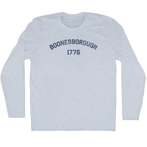 Product Story: Boonesborough 1775 Adult Tri-Blend Long Sleeve T-shirtProduct Description: Boonesborough 1775 Adult Tri-Blend Long Sleeve T-shirt Tri-Blend (Polyester, Rayon, Cotton) Buttery Smooth Soft Material Medium Weight Tee Soft Hand Print
