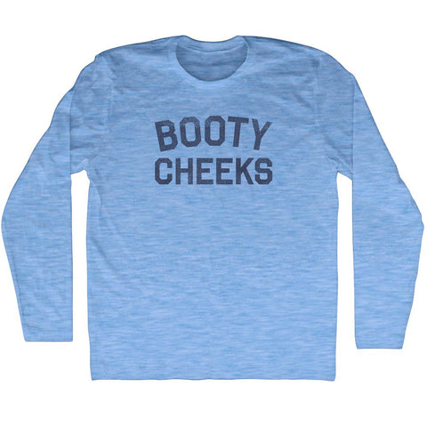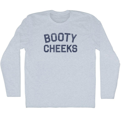 Product Story: Booty Cheeks Adult Tri-Blend Long Sleeve T-shirtProduct Description: Booty Cheeks Adult Tri-Blend Long Sleeve T-shirt Tri-Blend (Polyester, Rayon, Cotton) Buttery Smooth Soft Material Medium Weight Tee Soft Hand Print