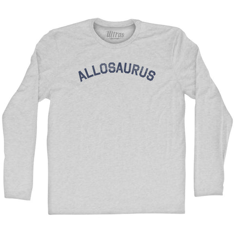 Product Story: Allosaurus Adult Tri-Blend Long Sleeve T-shirtProduct Description: Allosaurus Adult Tri-Blend Long Sleeve T-shirt Tri-Blend (Polyester, Rayon, Cotton) Buttery Smooth Soft Material Medium Weight Tee Soft Hand Print
