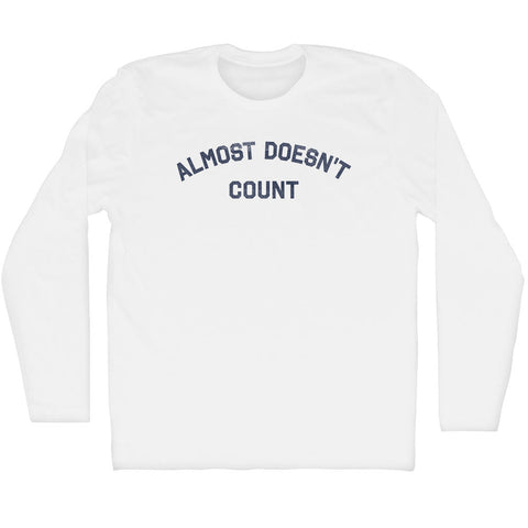 Product Story: Almost Doesn't Count Adult Cotton Long Sleeve T-shirtProduct Description: Almost Doesn't Count Adult Cotton Long Sleeve T-shirt Cotton (90% Cotton &10% Polyester) Buttery Smooth Soft Material Medium Weight Tee Soft Hand Print