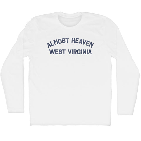 Product Story: Almost Heaven West Virginia Adult Cotton Long Sleeve T-shirtProduct Description: Almost Heaven West Virginia Adult Cotton Long Sleeve T-shirt Cotton Buttery Smooth Soft Material Medium Weight Tee Soft Hand Print