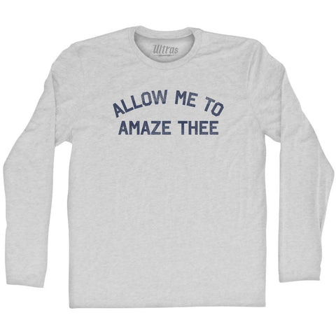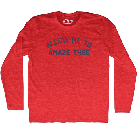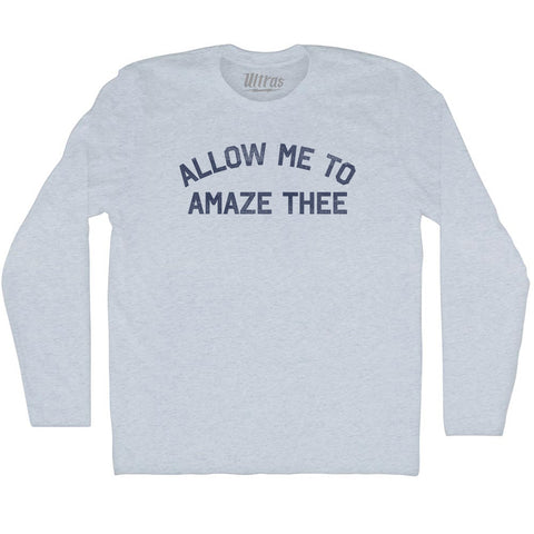 Product Story: Allow Me To Amaze Thee Adult Tri-Blend Long Sleeve T-shirtProduct Description: Allow Me To Amaze Thee Adult Tri-Blend Long Sleeve T-shirt Tri-Blend (Polyester, Rayon, Cotton) Buttery Smooth Soft Material Medium Weight Tee Soft Hand Print