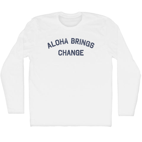 Product Story: Aloha Brings Change Adult Tri-Blend Long Sleeve T-shirtProduct Description: Aloha Brings Change Adult Tri-Blend Long Sleeve T-shirt Tri-Blend (Polyester, Rayon, Cotton) Buttery Smooth Soft Material Medium Weight Tee Soft Hand Print